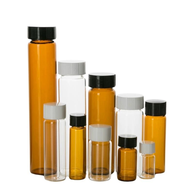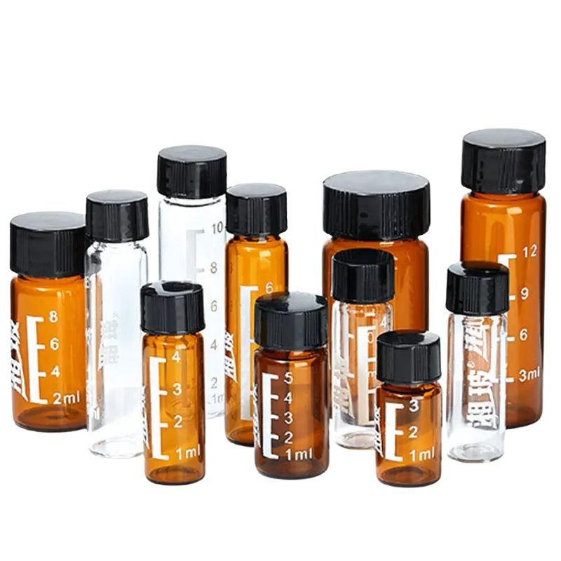Item: Glass Vial, laboratory grade Material: Borosilicate Glass or Soda Lime Colour: Amber or Clear Flat bottom Inner PTFE/Silicone stopper and Screw Cap(Hole/No Hole) 100pcs per pack